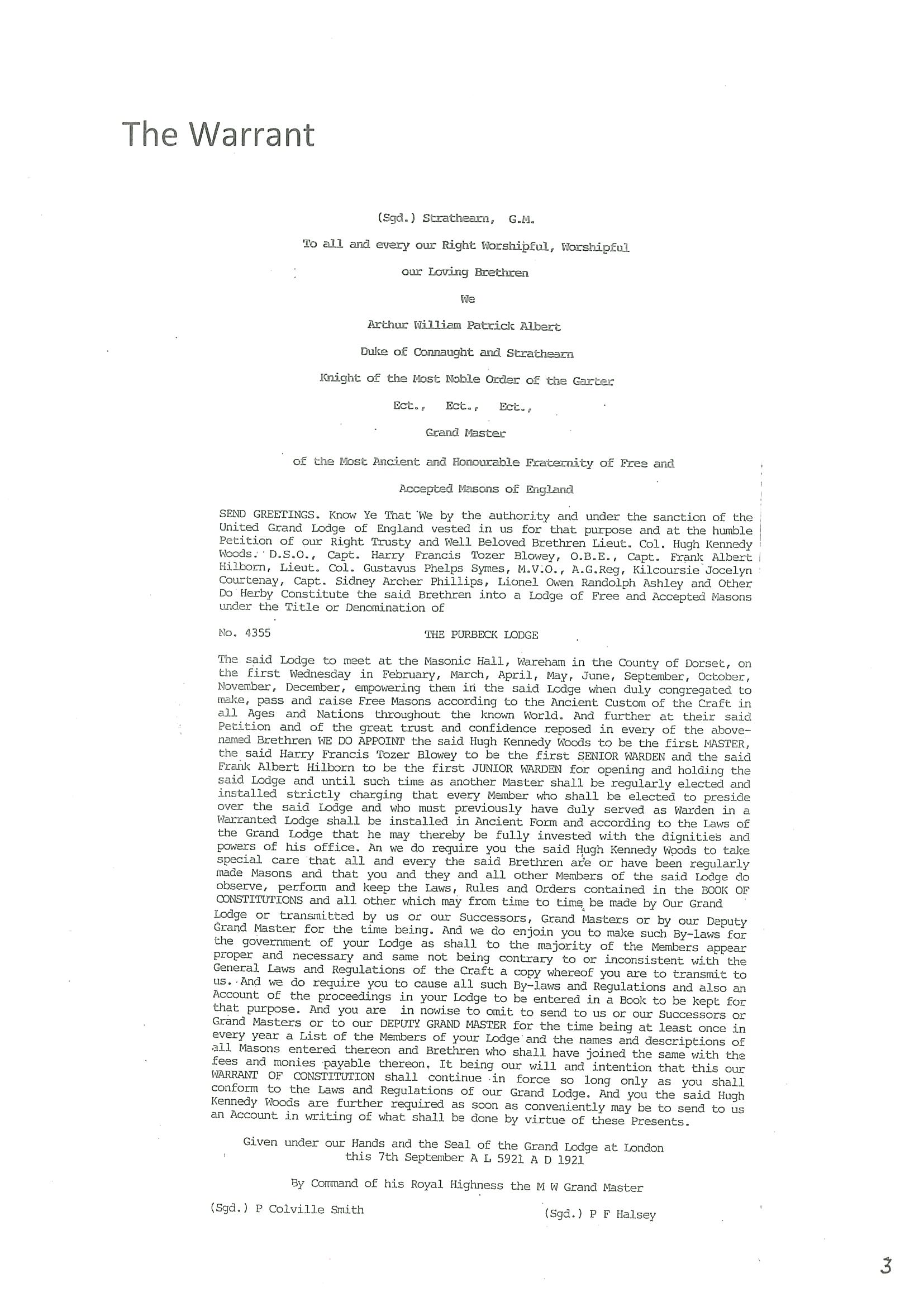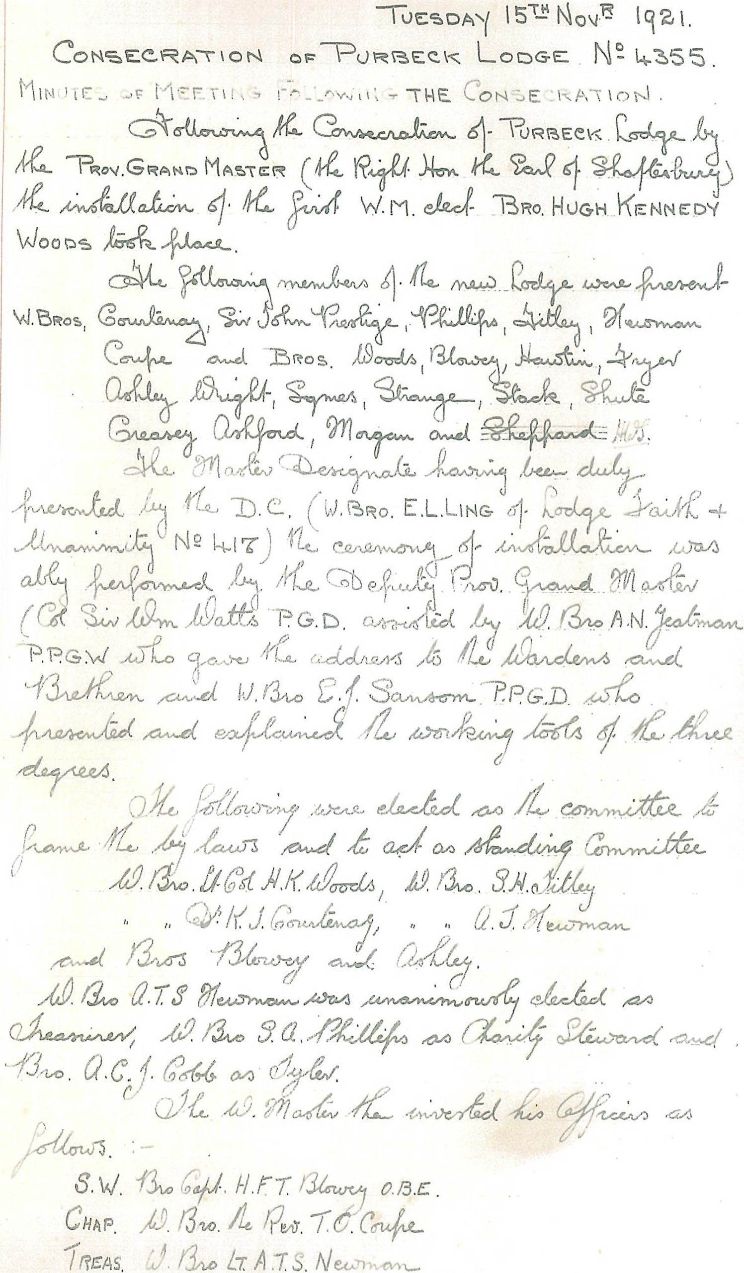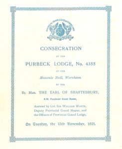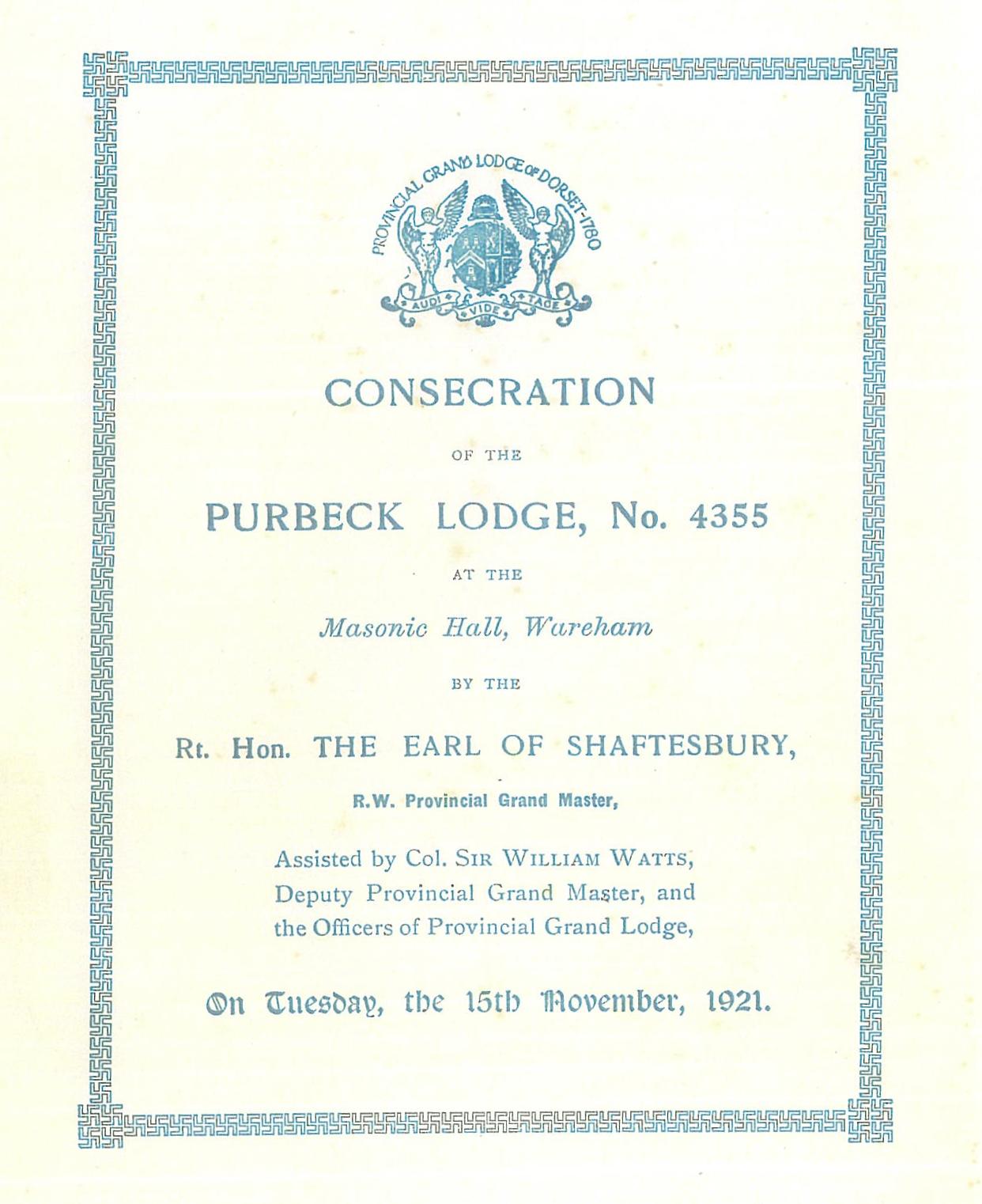 When W. Bro Mike Warne asked me to update the Purbeck Lodge History to celebrate our 100 year Anniversary, I was unaware of the size of the task!